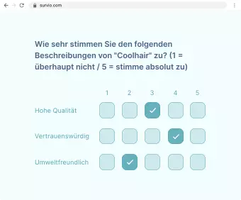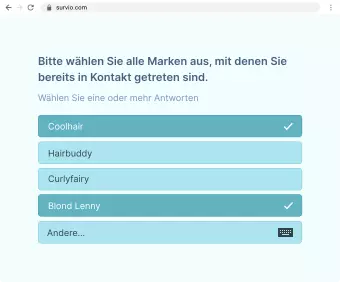 Eine typische Frage zu Beginn einer Umfrage zur Markenbekanntheit. Sie fragt, wie bekannt Ihre Marke ist. In den folgenden Fragen können Sie bereits Ihren Markennamen verraten. Vermeiden Sie jedoch Suggestivfragen wie "Das Logo von [Markenname] sieht doch toll aus, oder?".