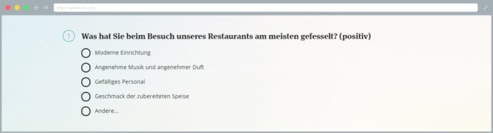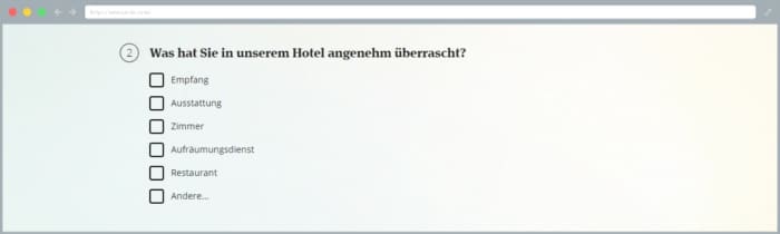 Dieser Fragetyp ist eine Analogie des vorigen Typs, jedoch mit dem Unterschied, dank dessen die Befragten mehr Antworten auswählen und auch ihre eigenen Antworten einschreiben können. Dieser Fragetyp eignet sich zur Beschreibung bestimmter Eigenschaften oder Rückbewertung von Dienstleistungen oder Produkten.