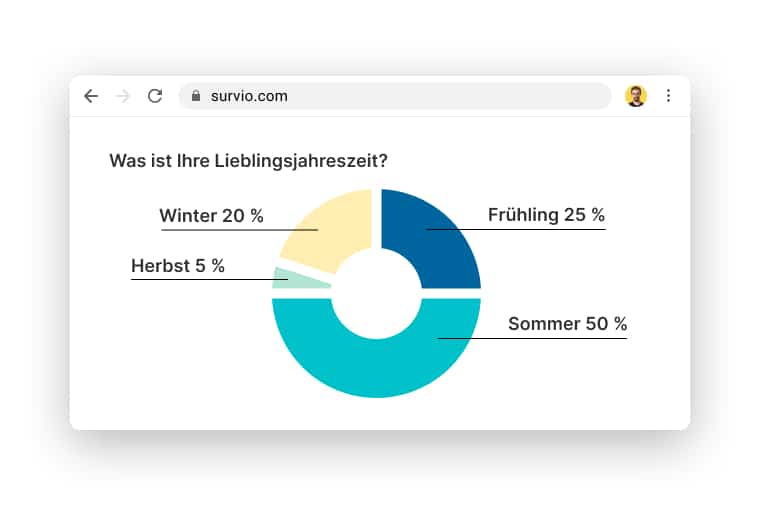 Die Ergebnisse können Sie einfach in einem beliebigen Diagrammtyp mit einem Kreisdiagramm darstellen und somit eindeutig sagen, welche Jahreszeiten bei den Befragten beliebt sind.
