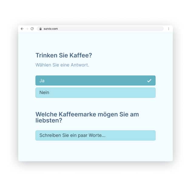 Wir sehen oft, dass eine Umfrage voll von simplen Fragen ist. Es handelt sich beispielsweise um Fragen zum Thema Konsum. Beispielsweise die in den vorherigen Tipps aufgeführte Frage „Trinken Sie Kaffee?“ Es gibt gleich mehrere von derartigen Fragen, beispielsweise
