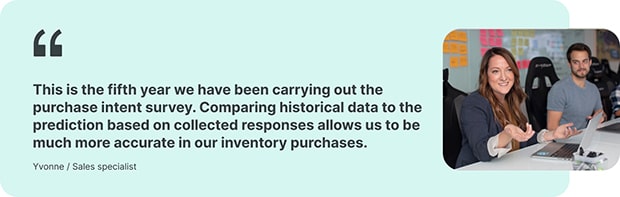 Not only can you compare the outputs of the surveys you conduct to make predictions for the future. You can also compare individual surveys against historical data and see over time whether the prediction has actually been reflected in real data. This way you will be able to estimate purchase intent much more accurately.