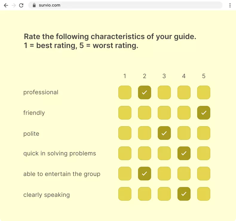 Such a survey also collects information that you will need for future service improvements. However, if something went wrong during the trip, it won’t get your client to fill out the survey. Therefore, you need a way to motivate respondents to answer the questions in your survey. How about a discount on your next tour? Or a free first dinner on the next trip? Choose a reward that is worth the cost. It's much less damaging if the client gives negative feedback to you and not to three other friends.
