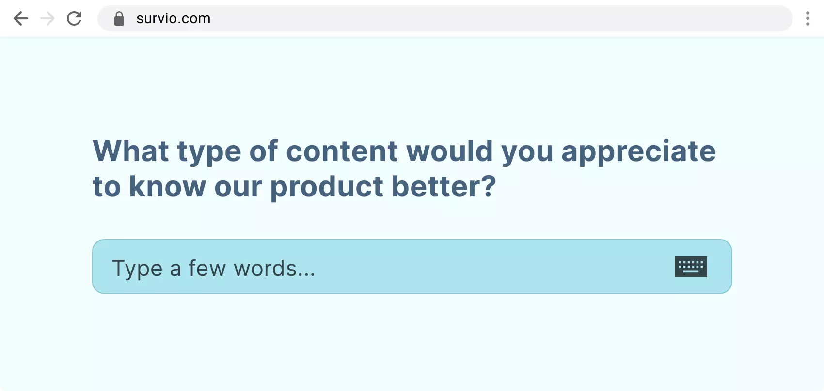 Pop-over widget is a nifty tab attached to the side of a web page. Give it a nice headline (eg. Tell us more about your company etc.) and invite visitors to share their insights. The survey can be filled out directly in an interactive bubble that unfolds after the tab is clicked.