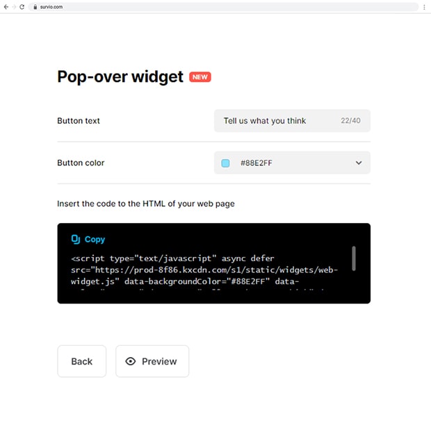 There are three options for how to embed your survey into your website. Survio generates the HTML code for you, just ask your website designer to include the code into the current code of the website.