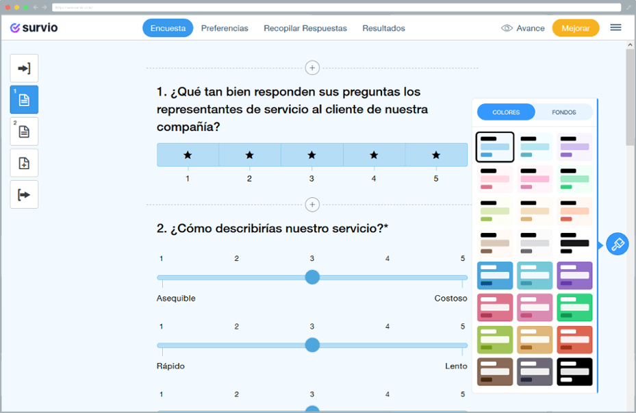 - Nuevo diseño de encuestas: moderno, limpio, personalizable, fácil de leer y con una excelente interfaz de usuario. Todos entienden qué hacer, cómo responder preguntas y cómo enviar encuestas.