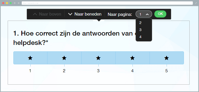 - U krijgt een volledig nieuw ontwerp voor de vragenlijst: modern, schoon, gemakkelijk te lezen en met een geweldige gebruikersinterface. Het is Iedereen meteen duidelijk wat te doen om een vraag te beantwoorden en de ingevulde vragenlijst te verzenden.