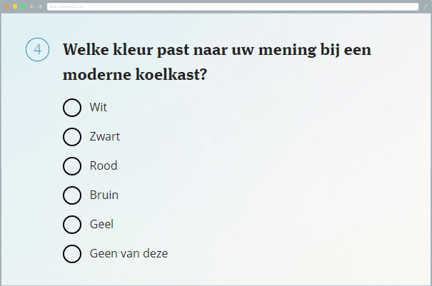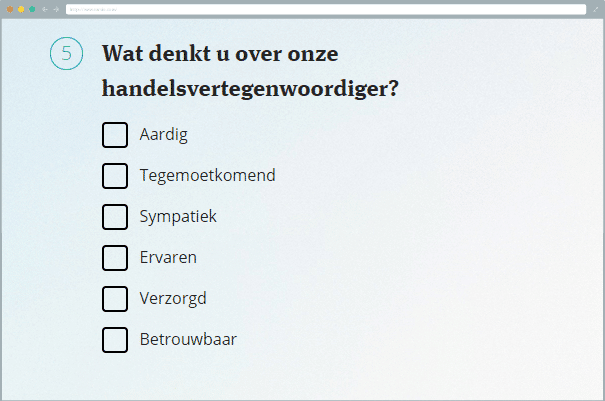 | Gemakkelijk en snel in te vullen | Vraag en alternatieven zijn moeilijk te formuleren |