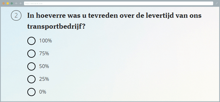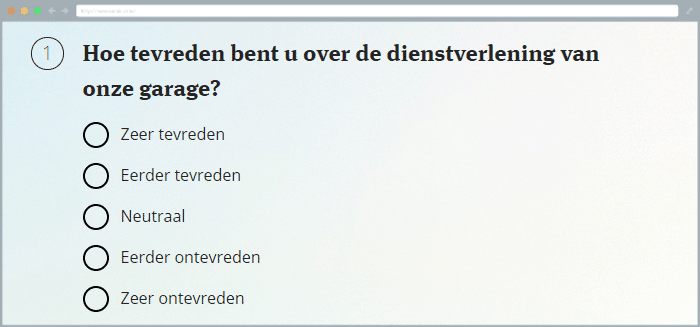 Klassieke tekstvraag die tevredenheid van de respondent beschrijft.