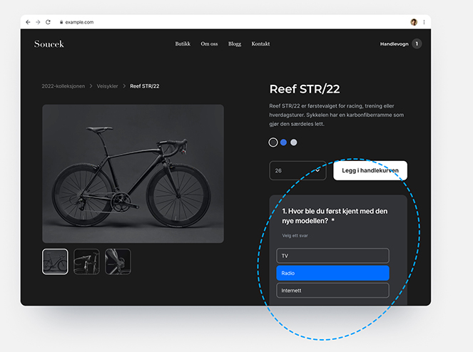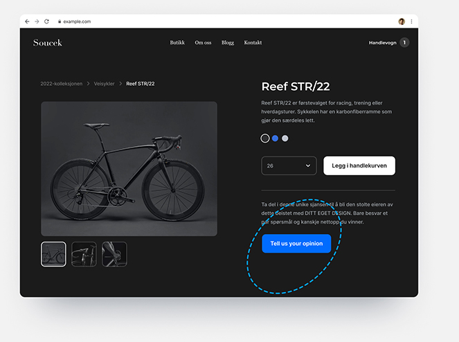 Generer en unik URL som leder til undersøkelsen din og send den når det passer deg. En egendefinert URL-addresse kan gjerne brukes for å nå målgruppen din. Den kan også brukes til å opplyse om hva undersøkelsen dreier seg om.