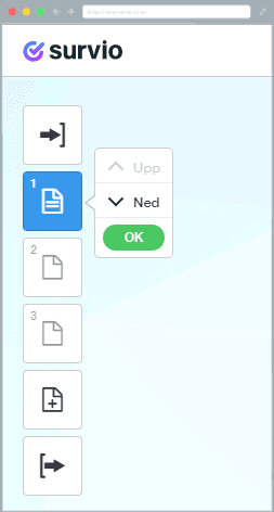- Vi har också ändrat sätt på vilket man flyttar frågor (uppåt eller neråt samt till enkätens andra sidor) – vi har lämnat det manuella Drag&Drop sättet som inte var intuitivt och ofta orsakade problem. Det nya sättet är snabbt, problemfritt och fungerar väl även på enheter med pekskärm.